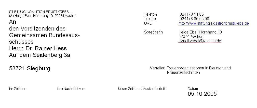 Im Brustkrebsmonat Oktober 2005 ist der Gemeinsame Bundesausschuss den Frauen Antworten schuldig.
