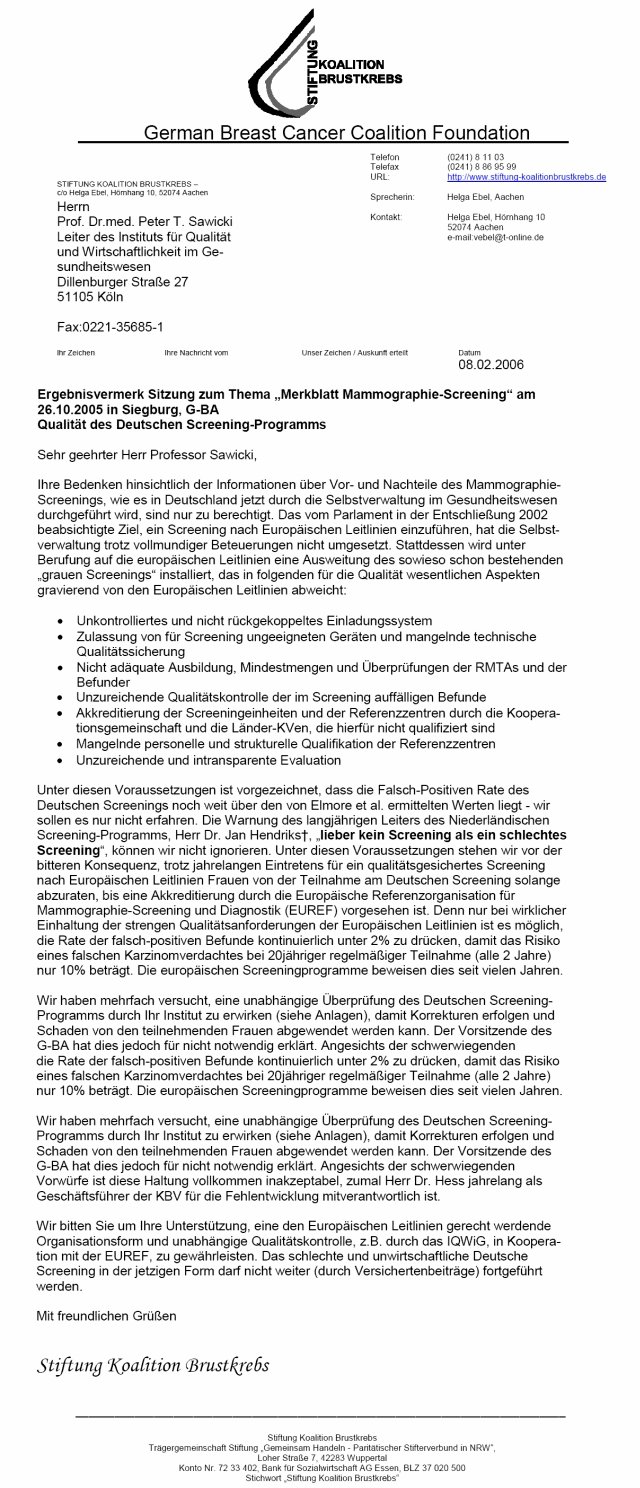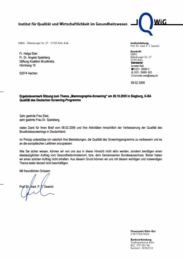 Antrag auf Überprüfung des Deutschen Mammographie-Screening Programms durch das IQWIG |
